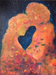 Det är en målning som ger healing till vår feminina sida och till vårt inre barn. Att den först visade en man och en kvinna och sedan ändrade sig till en mor och en dotter betyder att den innehåller läkande energi från både den maskulina och den feminina energin. Om du vill kan du sitta med bilden och meditera på den för att dels få healing och dels få information om vad du själv har inom dig som den kan hjälpa dig att läka.