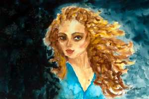 Det här är en akvarellmålning jag gjorde för många år sedan när jag gick en konstskola online. Den känns ganska aktuell fortfarande och passar ju bra idag på Lucias dag. Kvinnan på bilden ser bestämd och målmedveten ut och man kan se att hon har gått igenom mycket för att komma dit hon är på väg.