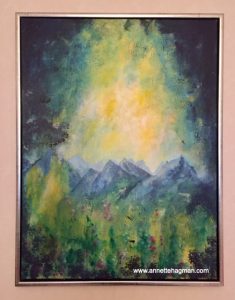 Under lång tid har jag haft en målning som vägrat prata med mig. Den tillhör en serie av fyra målningar och jag har ibland känt mig frustrerar och irriterad eftersom jag ville att serien skulle bli klar. Men tavlan vägrade visa mig något alls. Den har stått ömsom på staffliet och ömsom gömd bakom andra målningar. För några dagar sedan började den prata med mig och den sa att den ville ha sin ram. Jag har ju lärt mig att lyssna på mina målningar även om jag tycker de beter sig märkligt så jag hämtade ramen. Döm om min förvåning när hela tavlan ändrade energi och blev oerhört kraftfull. Den visade mig hur den är en healingportal och att den vill hänga i mitt sovrum. Så nu blir det åka av minsann. Det ska bli spännande att se vad den kommer att tillföra i min healingprocess  🙂