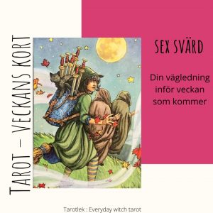 Sex svärd i Tarot talar generellt om att göra en resa. Det kan vara en fysisk resa och in så fall oftast en längre resa. Sex svärd kan även tala om en inre resa där man lämnar bakom sig sådant som inte längre känns rätt och sant. Min känsla denna vecka är att de vill visa oss lite både och.